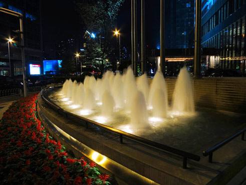 继续前行,一片小小的喷泉送来阵阵清凉。作为答谢,让我为你创作丝绸般流动效果吧。夜晚、长时间曝光、S110,三者合拍完美地演绎了这样的效果,而画面又是十分细腻。后方的路灯形成的与单反一样的“星芒“效果也让这画面平添了几分灵动。
