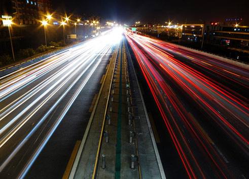 走走停停中,夜色已深。走上过街天桥准备动身回家,看到过往的车辆灯光交错,突然来了灵感:为什么不用S110尝试一下那种使用单反拍摄的流动灯光效果呢?速度优先模式并将曝光速度设置为15秒,“咔哒”声后,一张让人惊喜与震撼的照片出现了……