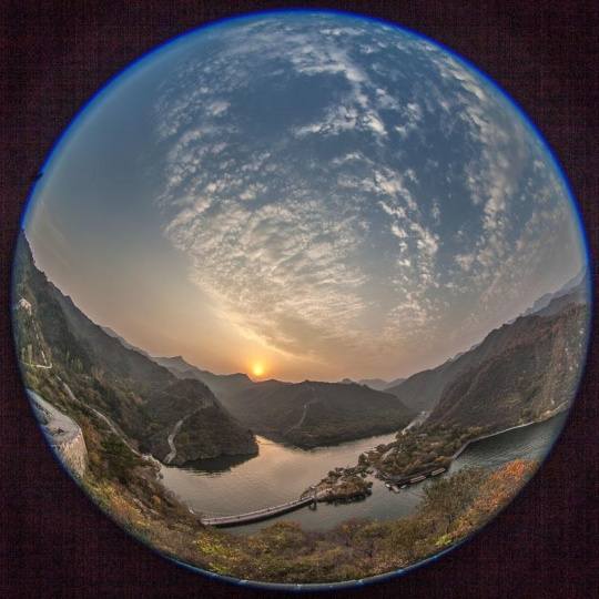 这支镜头结合了仿生学的原理,现实中鱼看世界的样子就是照片所拍的那样。鱼看到的世界虽然产生了严重的桶型畸变,但它能看到人眼所不能及的范围。其结果是除了画面中心的景物保持不变,其他本应水平或垂直的景物都发生了相应的变化。也正是这种强烈的视觉效果为那些富于想像力和勇于挑战的摄影者提供了展示个人创造力的机会。这就是鱼眼镜头的魅力。