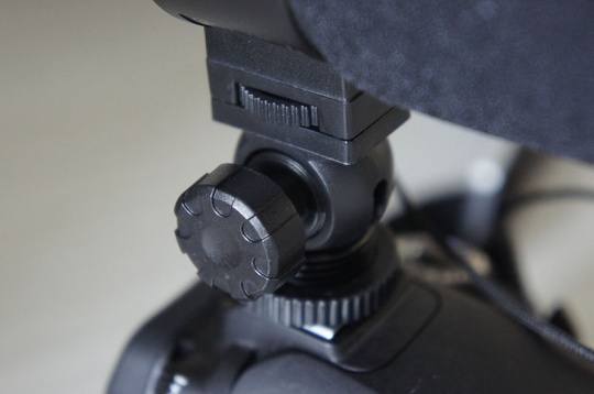 麦克风与热靴接口处有一个可以旋钮式的调节装置,可以调整麦克风指向角度的高低。