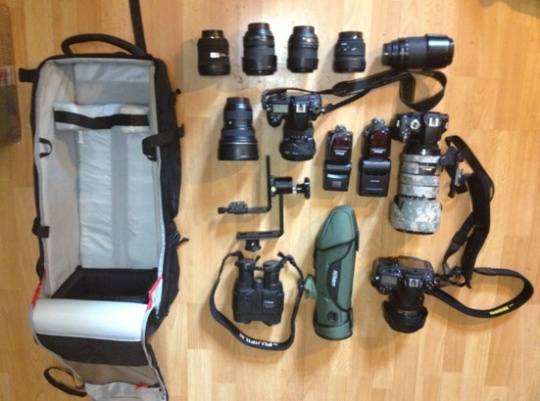 这是开始想放进去的所有器材,包括了我景观摄影和观鸟摄影的主要家伙。