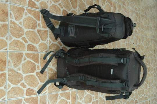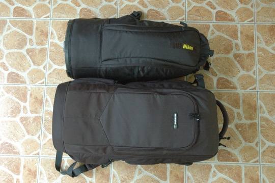 Compu Trekker Plus AW 装200-400加机身, 与MB40对比的照片。可以看到这个中型摄影包, 因为体积大(重量也上去了, 3KG多), 能容纳更多, 但有时只需携带一支200-400出场, 就累赘了。