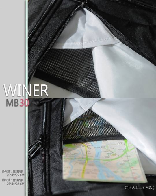 WINER MB30在细节上也考虑比较周全,包左右侧和正面上侧提供了很多装小物品的空间。