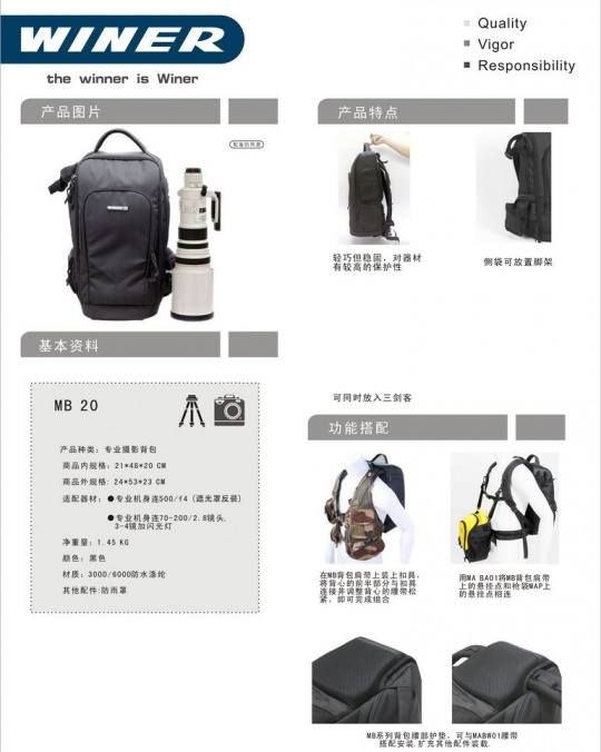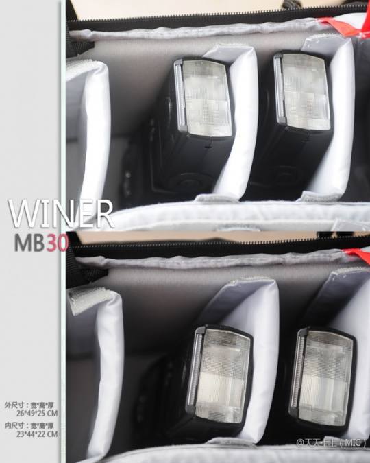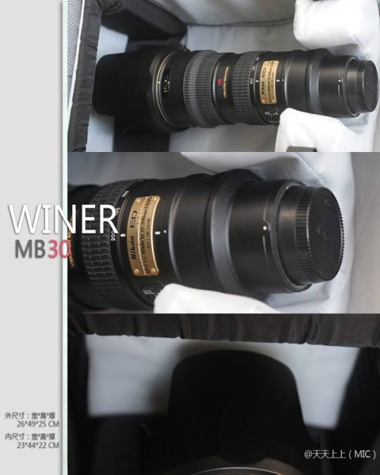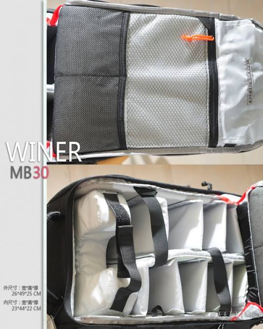 综合以上介绍,可以看出WINER MB30为专业的摄影用家,对大型镜头加专业机身提供了良好的保护和便携方案