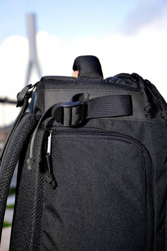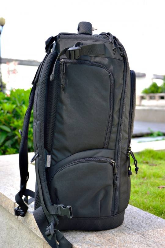 2.包包左侧的脚架携行结构设计的不甚合理,太小,基本没法用。因为用800mm这么大的镜头的用家,怎么也得用3,4系的架子。而现在的脚架脚袋只能放一只脚,另外两只脚是自由的,无法束缚。而上面的固定收紧带,太短,根本绕不住我的捷信脚架。因此我的脚架是没法固定在这个包包侧面,太遗憾了。