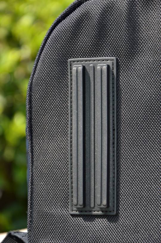 倒过来看看MB20的底部,它的底部有两条起到平衡稳定作用的固定条。两条固定条平行放置设计。这样摄影包可以平稳地竖直摆放而不用担心摄影包歪跌这个问题。