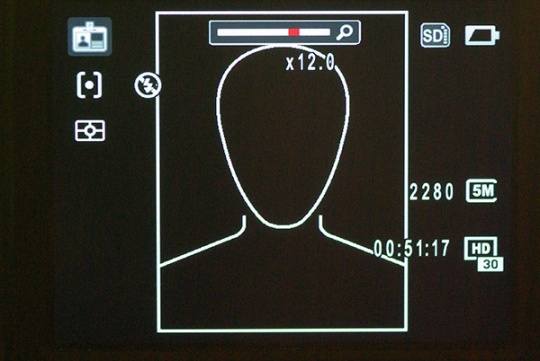 在这个模式下,拍摄时LCD屏上会出现一个头部和肩部的示意框,即使是没什么经验的拍摄者,也很容易正确构图。