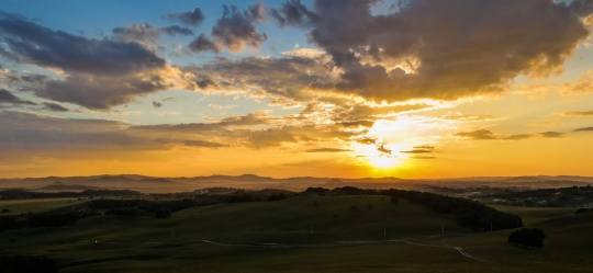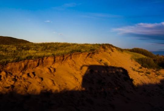 夕阳挥洒在草原上,仿佛将大地披上了一层金纱,中巴车投影在沙坡上,草地上,跟随我们一路向前