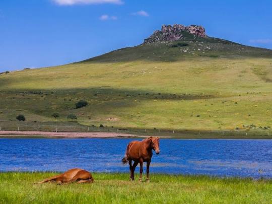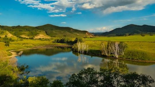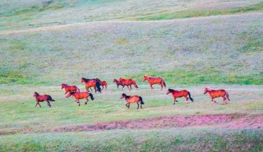 太阳刚起,一队奔马就从山坳里跑出来,只在动物园看过圈养的马,看到在草原驰骋的奔马,心情还是非常激动.