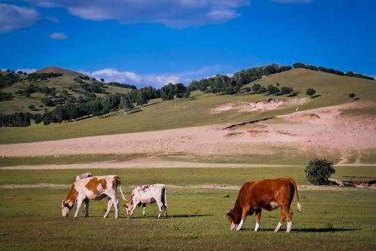 早餐后,坐着越野车一路欣赏草原美景。最靓丽的风景,还是那满山满坡的马、牛、羊,以草原,山坡为背景,构成了一幅幅画一样的美景