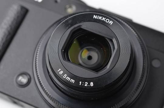 尼康专门针对纤薄、小巧的机身设计了18.5mm f/2.8镜头(等效28mm视角)。该尼克尔镜头采用5组7片结构,比同类产品更简单,光圈叶片为7片。此外,该镜头与普通便携相机相同,采用伸缩设计,体积非常小巧,镜头收回有叶片遮挡镜片。这样的设计简单有效,不用担心镜头盖丢失。至于光学素质,一般来说定焦结构更加简单,性能更有保障,再加上针对性优化,用户完全可以放心。