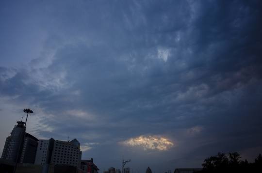 一次下班后,临近傍晚,北京上空乌云逐渐聚集,就连夕阳也未能幸免,被污浊的云层遮挡。然而不知何故,一大团乌云中,像是裂开一个口子,口子的边缘映出金边。如此诡异的景象自然不能错过。正好掏出兜里的COOLPIX A将其拍摄下来。28mm视角偏广,非常适合拍摄这类大场面。