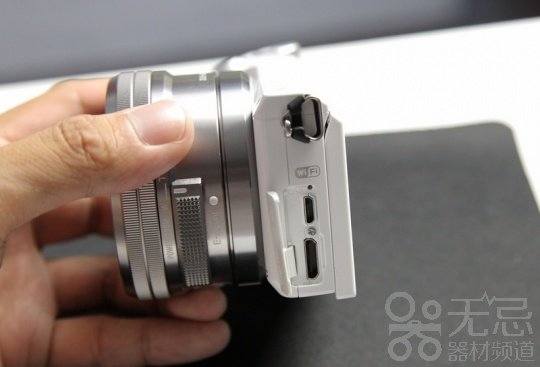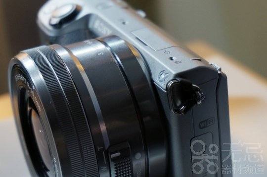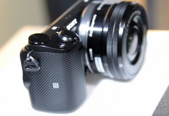 机身的右侧手柄位置乍一看也没啥,但仔细会发现在手柄处多出了一个N字样的标识,笔者感觉这应该算是机身外观唯一的变化了。NEX-5T带有NFC近场通信功能,而手柄位置就是机身感应区域。使用者用移动设备贴近5T的手柄位置就可以进行数据传输了。