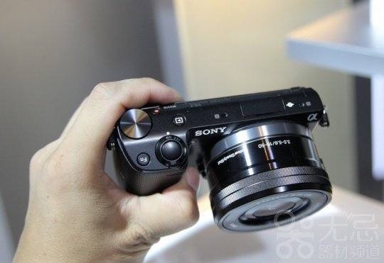 从现场的外观来看,新的NEX-5T跟前作相比没有什么大变化,依然是经典造型。虽然机身很小巧,但相机的手柄部分做的很宽大,即使是成年男性也能很稳的抓握住机身。