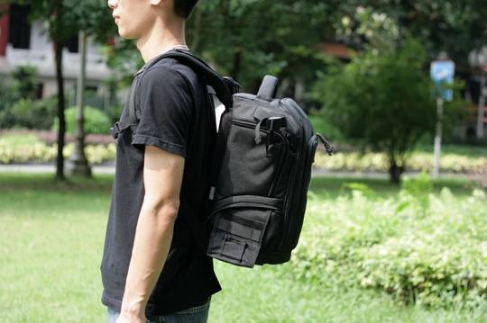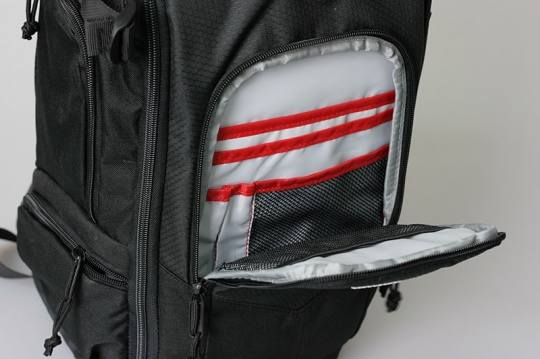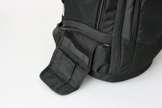 从侧面看,MB1的厚度还是比较足够的,两个侧面分别设有小件配件存放的附加袋。