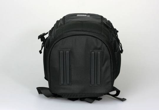 作为整个背包承重最多的部分,两条背带与包身的结合位置必须要做得非常牢固,MB10在这方便做得不错。另外两条超宽加厚的背带减轻了背负时候的压力,与身体背部接触的位置采用了3D网状结构,可以增加透气性及摩擦力,此外背面的三个方向的通气凹槽也能够一定程度上缓解双肩包背部散热慢的缺点,增加背负时候的舒适性。