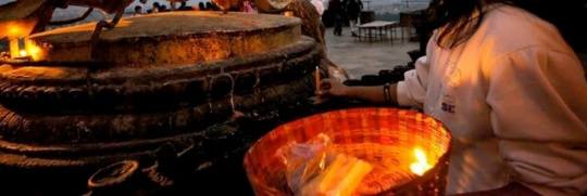 加德满都侯庙的点灯女孩