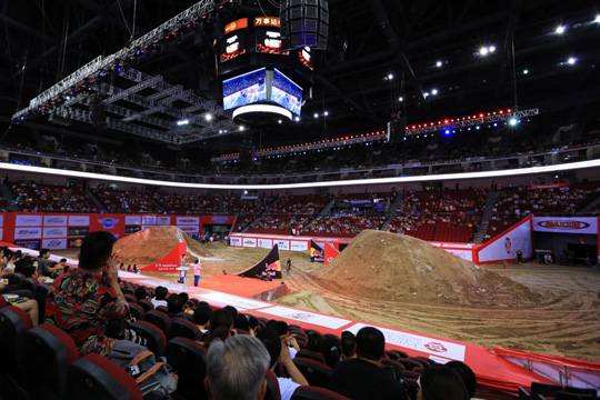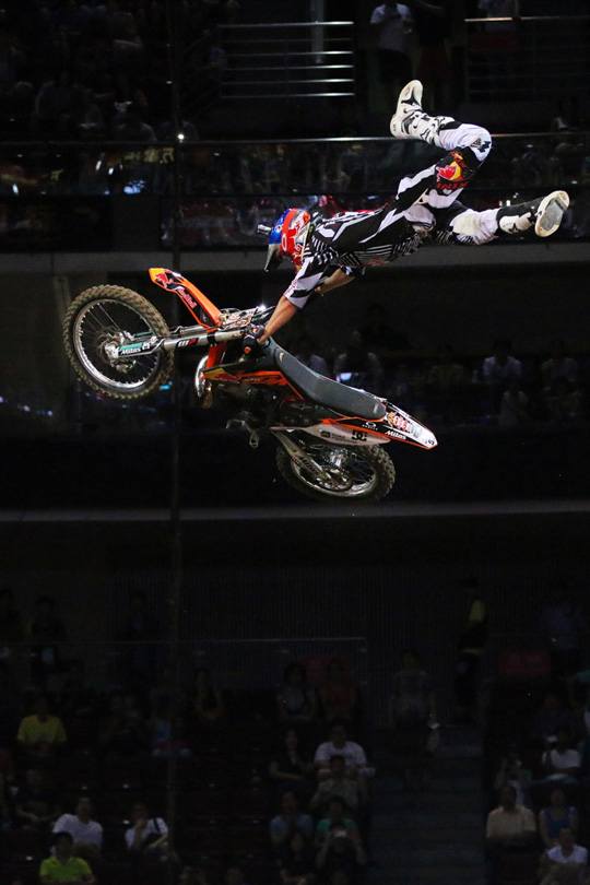 今年7月2日,佳能公司刚刚发布了EOS 70D,虽然定位是EOS 60D的升级产品,但其大部分性能参数甚至可以与APS-C画幅旗舰产品EOS 7D相媲美,尤其是开创性的使用了全像素双核CMOS AF自动对焦,使得液晶监视器对焦速度大幅提升,让我们佳能粉丝大呼过瘾!经过一个月的日思夜想,等到70D一上市本人就抢到了第一台,正好碰到万事达体育馆举办“国际花式极限摩托车表演赛”,有机会让我小试牛刀一下。 从五棵松摄影器材城出来,第一时间冲向体育馆,还好刚刚赶上了开场。