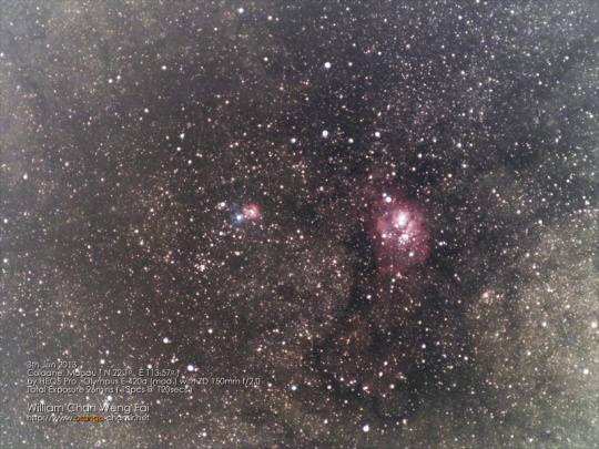 在非常强劲的城市光害下,以移除了红外线滤镜的 E-420 和小胖子拍摄,没有任何光害滤镜下算是超额完成。