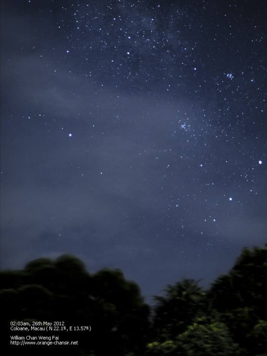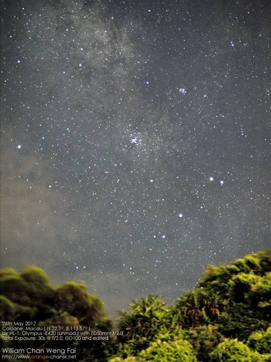 继续是移除了红外线滤镜的 E-420 ,镜子是 ZD50mm f/2.0 这支 SHG 级数的微距。前置了光害滤镜,可惜拍摄时月亮还没下山,光害由城市光换成月光。