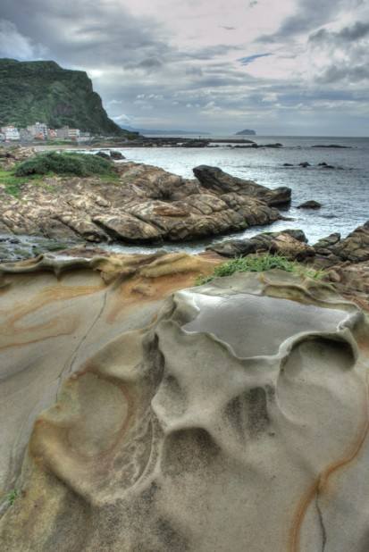 垦丁海岸线非常美,在海的这边有造型独特的礁石作为前景,海的那边有绿色的山丘和彩色的房子作为背景,这样的画面适合用慢门来呈现,我选择在日落后进行拍摄,因为这个时候运用ND滤镜能充分减慢快门速度,从而让海面雾化。另外我还开启了相机的自动亮度优化功能,这个功能能分析被摄体亮度和对比度,自动补偿亮度,很适合在拍摄日出日落风光片中使用,可长期设置为开放状态。