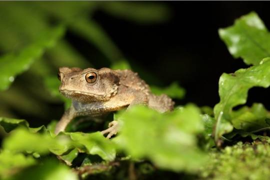 晚饭过后,我来到期待已久的台北富阳公园进行夜间拍摄,富阳公园是台北市境内唯一一处自然生态公园,园内不设路灯,不破坏原有森林植被,最大限度保持原有的森林状态。我打起强光手电,沿着公园路边走边搜寻深夜活动的精灵们。路边的树丛里,星星点点的微弱亮光昭示着萤火虫的存在,我像是走入了仙境一般,蛙鸣、虫叫交织成一片,甚至不敢相信这是在城市内的公园。手电闪过一片草丛,出现一个反光点,我意识到这是有东西出现了,定睛观察,一只台湾特有的盘古蟾蜍正懒洋洋的在草丛里看着我。我平复住兴奋的心情,慢慢将手电放在可以打亮它的地方,慢慢俯下身子进行拍摄,小家伙并没有被我的拍摄惊扰,一直保持一个姿势任由拍摄。拍摄时,我使用了佳能 EOS 700D的CA模式,CA模式下的“鲜明V”选项具有丰富的色彩表现,成像饱和度较高,很适合拍摄生态题材。