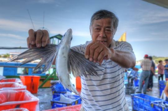 后壁湖渔港是垦丁著名的鱼市,在码头上我第一次见到了《少年派》中的神秘飞鱼。可惜它们这次并不是在海面上飞翔,而是渔民刚刚从海里捕捞上来,准备送上餐桌的美食。一位渔民看我一直在单手持机拍摄飞鱼的翅膀,主动走过来帮我拿起一条飞鱼,展开双翅让我拍摄。由于渔民与我的拍摄方位正好是逆光位,于是通过触摸屏快速点选屏幕,打开了700D机内自带“HDR逆光控制”功能,连续拍摄了3张照片,在相机内进行计算,将曝光适当的部分抽出进行图像合成,最终合成一张曝光正常的照片(如下图),其画面效果非常舒服。