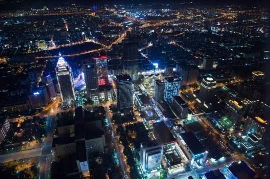 101塔是台北市的地标,在这里能看到台北的不夜城景象。我爬上了室外观景平台,发现四周都被铁架拦着,无法拍摄,只能回到了下层的玻璃全景展厅。室内展厅玻璃反射室内光线严重,所以决定用衣服包裹在镜头外面,形成比较大面积的遮光布,这招很奏效,遮光布解决了反光问题。架好三脚架,用镜头顶住玻璃,并开启机内降噪功能,将快门定格在13秒,最终拍摄到了璀璨的台北核心商圈夜景。