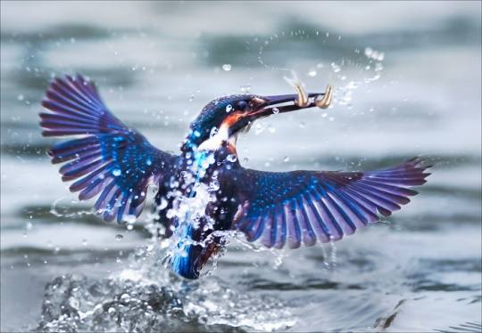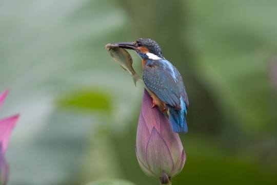 我还感觉,翠鸟钻水捕鱼的动作非常漂亮!眨眼间就能将一条鱼抲到手(嘴)。只可惜翠鸟捕鱼的速度实在太快,我尝试过几次,却未能拍到这一题材的清晰画面。据说,摄鸟圈内抓拍到翠鸟捕鱼的片也较少。由此,我认为拍翠鸟很富有挑战性。所以,我打算今后抽出一定时间认真拍摄以翠鸟为题材的片,尤其是运动版和飞行版的翠鸟片。