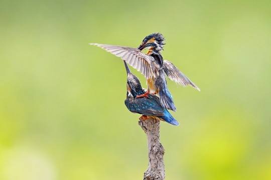 近二周几次去杭州植物园拍翠鸟,我忽然感觉翠鸟实在太可爱了!那宝石般绚丽的羽毛,那银铃般清脆的啼鸣,那电闪般迅捷的飞行,┅┅真是令人叹为观止!或许春天的雌翠鸟处于“月子”期——不宜近水,故近日不见雌鸟捕食,而是由雄鸟捕鱼给雌鸟食用。雄鸟为求妻爱,每天几次下水捕鱼,捕后不食,长时间含在嘴里,殷勤地伺机送给雌鸟——恩爱场面颇使人感动。