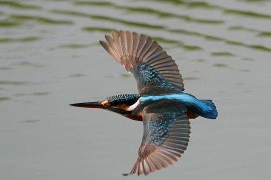 2、技术:首先是跟踪瞄准,这个没捷径,多拍多练。用相机取景器追踪比较难,属于内家功,正宗,很难出成果,练成则无敌;用红点瞄准镜辅助,较容易,属于外家功,有点偏门,相对容易上手。第二,预先对焦,以相机现在的科技水平,不先把焦点预先对在鸟儿可能飞经的距离的一定范围内,相机对焦系统来不及反应,即使拍到也多是糊的。第三,半按快门时机,过早过晚都不行,我以前习惯半按快门等待时机,常给拍飞鸟带来困扰,一定要等鸟儿进入到预对焦范围内,且瞄准了之后才能半按快门。第四可能的话,要选择稍开阔的场地拍摄,尽量拉开鸟儿与背景的距离,开始可选择天空或水面做背景练习。