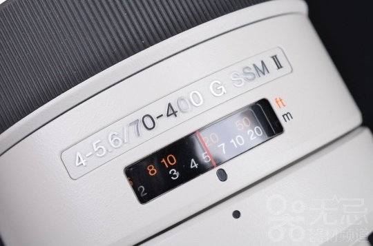 70-400mm F4-5.6 G SSM II的铭牌“4-5.6/70-400 G SSM II”从上代对焦锁定按钮附近(对焦环前)挪到对焦距离传窗上方。