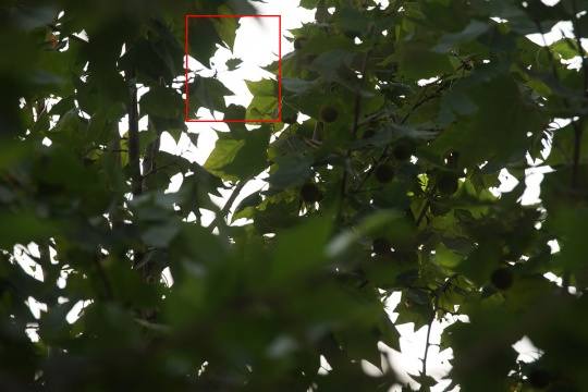 大光比逆光下,我们观察一下叶片与天空交接部分。从图中可以看到这款镜头无论70mm端还是400mm端全开光圈存在紫边,收缩光圈紫边有一定减轻(F8之后基本消失)。