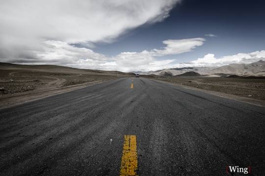 《在路上》:摄于念青唐古拉山口,前往纳木错的路上,相比没有一丝细节的纯蓝天,我更喜欢有些云~~~