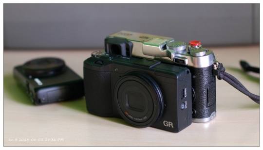迫不急待的拿出GR,小巧,不错,做工也不错啊。但是机身漆有颗粒感,易粘灰