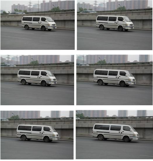 笔者这一梭子大概拍摄了十来张,截取其中的几张发现NX300配合高速连拍,还是能很好的定格快速移动的物体。像图中的汽车,它的移动轨迹基本上都拍下来了。