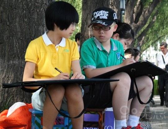大家早上8点多就到了现场,经过指导老师简单的布置,家长和孩子就坐在自己选择的位置上开始写生了。由于年龄不同,绘画的种类也不同,现场显得很热闹。学生和老师之间也是积极互动交流。看着眼前活泼可爱的孩子们,笔者一下子就被带回到儿时的年代了。