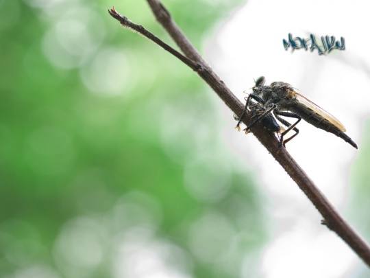 不使用外置取景器,使用可选最小对焦点后摆在你认为理想的构图点,到达与昆虫之间的可接受拍摄距离,有人可能会问:我还没到达预计位置,它们就跑啦,呵呵,其实很简单,你的每一个正常的迈步动作传到它们的世界就是雷一般的响动,提脚,轻放下,走2步停几秒,尤其对蜻蜓蝴蝶什么的;能蹲下绝对不要站立,到达拍摄位置前就把相机镜头对准自己手心或者任意你觉得合适的身体部位估焦,然后对准你要拍摄的昆虫慢慢推至大约清晰位置再对焦,拍摄,这是建立在小机器自动对焦遇到杂乱环境无法聚焦的最好办法。拍摄期间如果觉得焦点不清晰,可以半按快门靠身体前后的轻微晃动达到清晰位置后摁下快门,小机器多拍几张,不用介意。