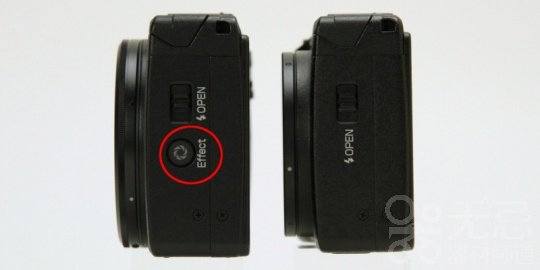 相机侧面除了内置闪光灯开关还有增加了Effect特殊效果按钮,此次GR加入了三种全新的效果:复古(怀旧)、高色调、微型模式。使用特效功能可直接通过侧面的特效按钮即可快速使用。(该按钮还有DOF(景深)预览功能)