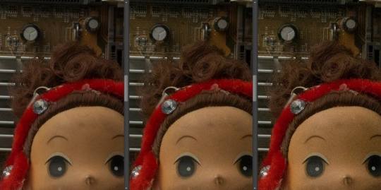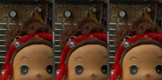 从上面实拍来看,放大至100%后,这款相机“6”以上密度的条纹上出现干扰摩尔纹,即使改变拍摄距离,在高密度的8、9、10上仍会出现摩尔纹。而RAW与JPG对比的话,JPG只是稍好一点,可见处理器这方面处理能力有限。所以现实当中,如果遇到这种问题可以通过改变拍摄距离的方法来解决,当然后期也需要第三方软件进行处理。
