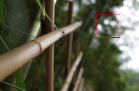 微距模式,全开F2.8光圈下,焦外呈圆形光斑,从图上截图来看这款镜头的虚化能力不错,焦外光斑比较柔和。当然在普通模式下,这款相机的虚化能力比微距模式还是要差一些,光斑也会小很多。焦外光斑呈圆形得益于这支镜头采用了9叶片圆形光圈。