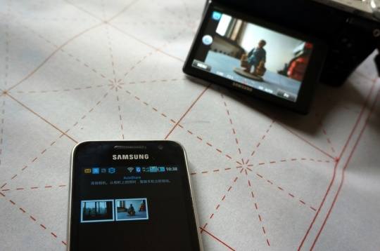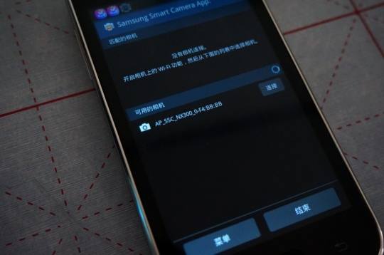 此前在手机上已经打开Samsung SMART CAMERA App。很短的时间内,手机和相机连接起来。