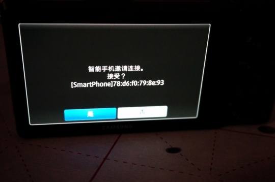 点击连接,相机屏幕显示“智能手机邀请连接。接受?”点击“是”