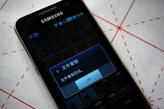 过一会儿,手机上出现如下对话框:文件复制完成。