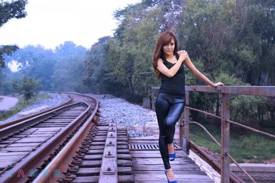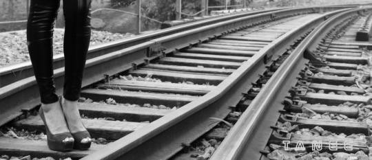 铁轨柔情:铁道美女人像