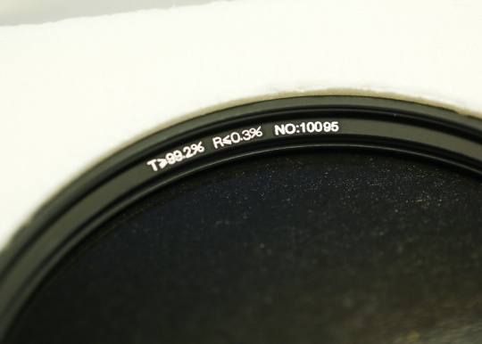 NISI UV370 UV镜内框上丝印上了银色字的产品特性参数T(透过率)≥99.2%,R(反射率)≤0.3%,以及产品序列号,我这个编号是10095,应该是第一批的产品。
