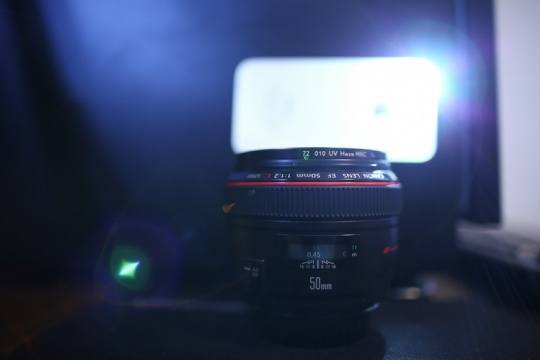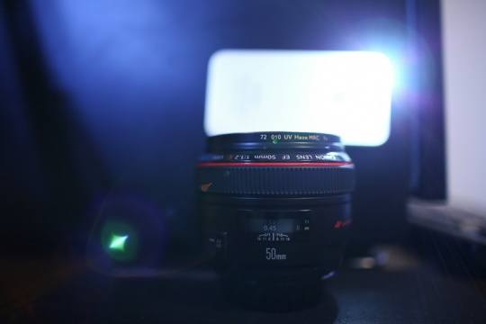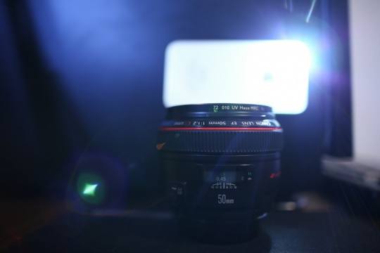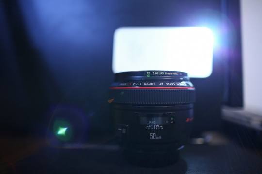 模拟了一个极端的场景,背景是黑色防潮柜,主体是黑色镜头和白色手机,LED灯正对拍摄相机。这个场景实在太考验镜头和UV镜了,一般的变焦头碰到这种场景基本上是死光光没法看的,所以选择了抗眩光相对出色的广角镜头:佳能EF24mm/F1.4 L II,机身是佳能5D3,光圈全开,手动档曝光,保持曝光参数一致。
