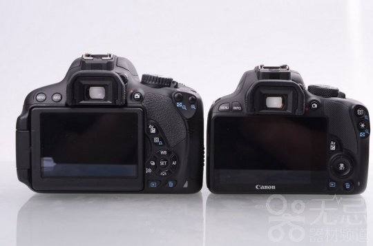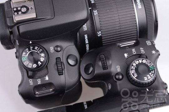 650D机顶内置立体声麦克风,100D仅支持单声道麦克风(可外接)。肩膀上100D模式转盘可360度旋转,其他按键布局与650D相同