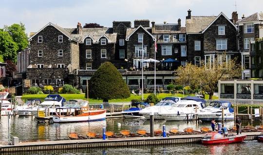 温德米尔湖边的码头地区,有各种游湖路线的游船,以及不少私人游艇。