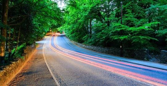 湖边的公路,晚上10点多了,但是天还没有完全黑